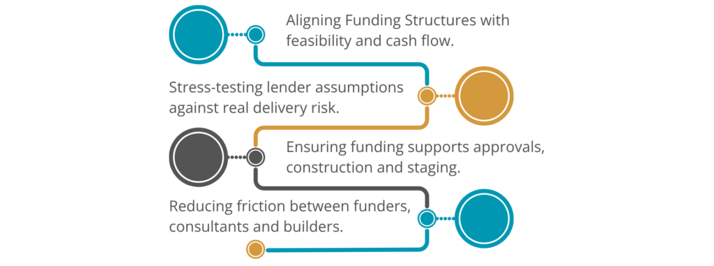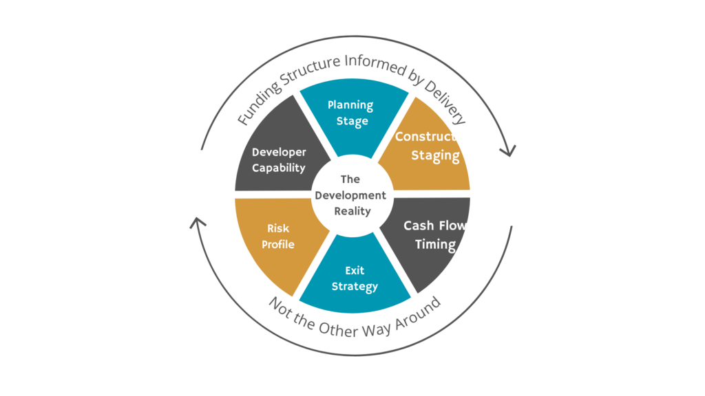 Every development carries its own risk profile, timing constraints, and sequencing challenges. Planning status, approval pathways, construction complexity, staging requirements, cash flow timing, drawdown mechanics, exit strategy, market exposure, and developer capability all materially influence what type of funding structure will actually work. Ignoring these fundamentals can lead to funding arrangements that look attractive on paper but create friction once the project moves into delivery.